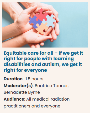 People with learning disabilities and autism often experience significant health inequalities, including poorer outcomes and negative interactions with healthcare services. This workshop aims to improve care for people with learning disabilities and autism in Australia by improving the education of medical radiation professionals. Addressing key issues such as diagnostic overshadowing, unconscious bias, and the lack of reasonable adjustments. Participants will gain essential knowledge and practical tools to better recognise and respond to the unique needs of these people. By understanding their experiences and challenges, professionals can improve clinical practices, reduce health inequalities, and ensure equitable, high-quality care for all and promote inclusive healthcare education.