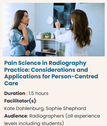 - Apply specific strategies within clinical radiography practice to improve the experiences and care of patients with pain.
